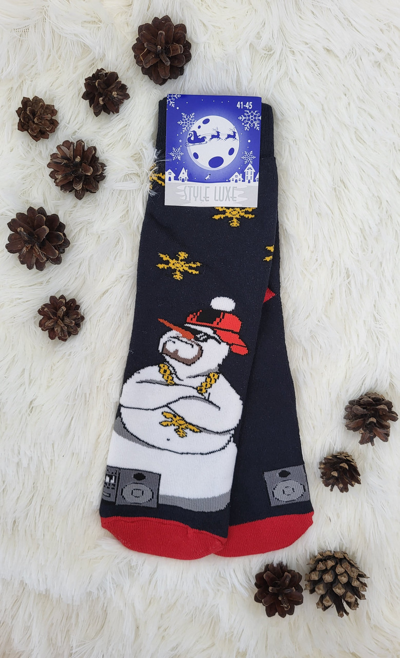 Шкарпетки чоловічі Теплі махрові з малюнком Сніговик, різні кольори 41-45 Шкарпетки новорічні на подарунок