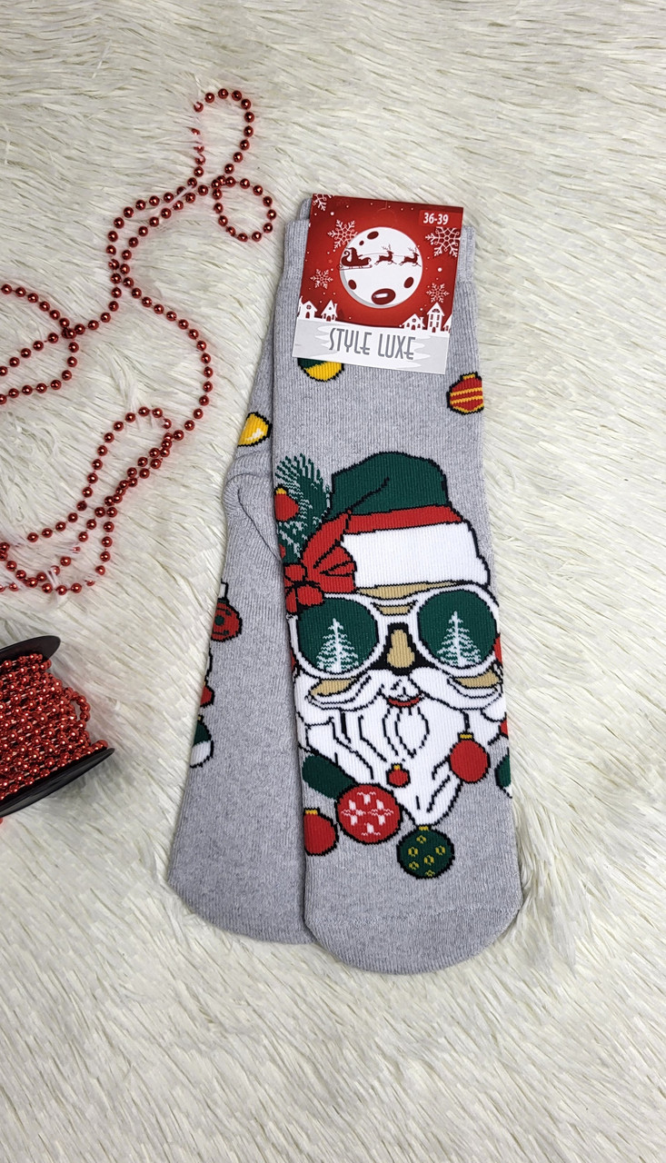 Жіночі махрові шкарпетки Новорічні "Санта окуляри", різні кольори. Теплі шкарпетки на подарунок